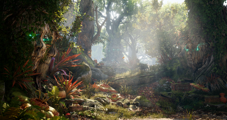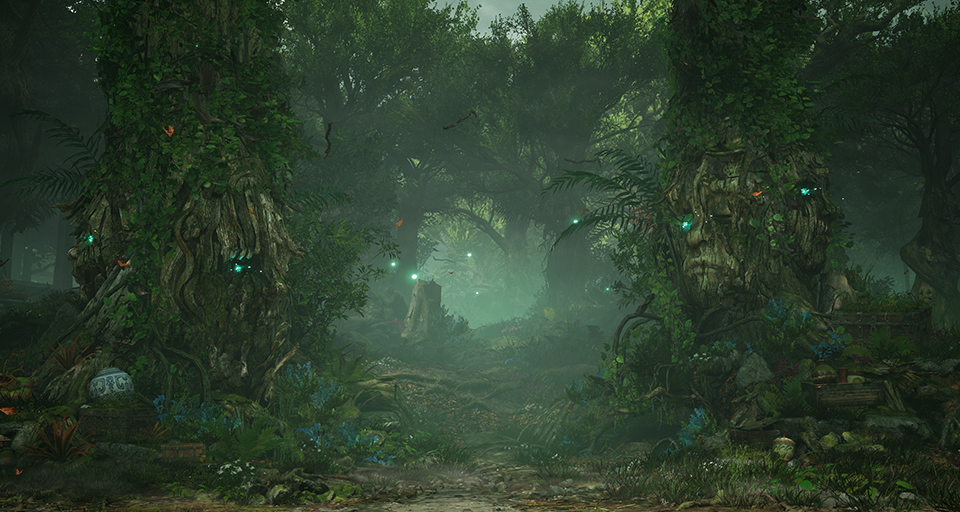 A place of transcendant beauty, the Living Forest embodies peace and calm. Its trees house the souls of Outworld's honored dead. Illuminated by the sun, the forest is a masterpiece of nature. But a particular magnificence can be found during its frequent rainstorms.