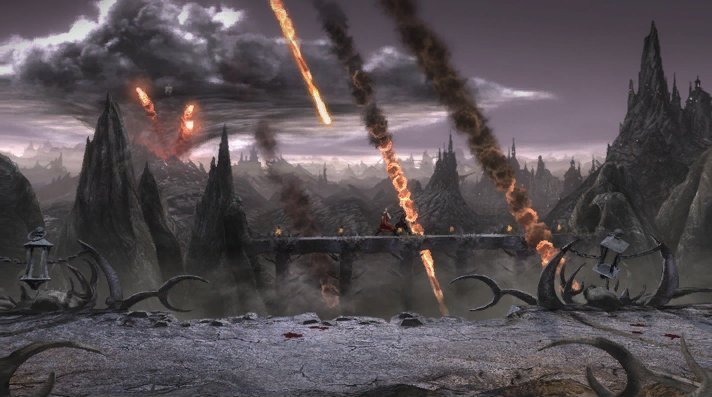 In Mortal Kombat: Deception, instead of fighting on the bridge, kombatants do battle on a large square platform next to the bridge. Defeated warriors can still be knocked down onto the spikes below.