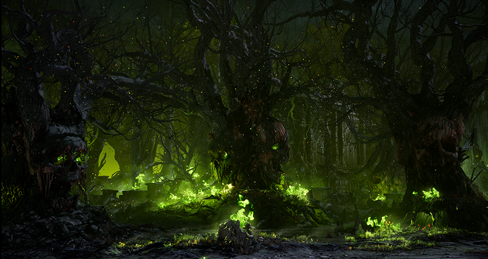 When bombarded by dark magic, the Living Forest is horrifically corrupted. The souls residing within it will never again rest in peace.