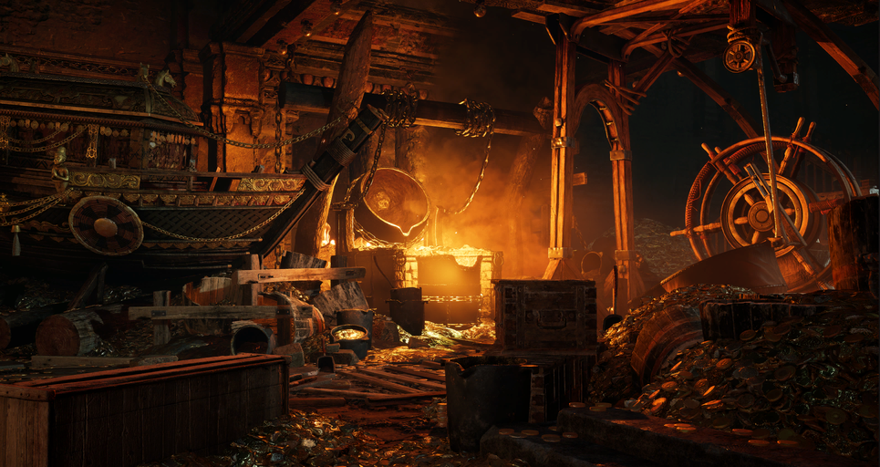 When active, the smelter's warm glow provides a comforting heat by which to make off with ill-gotten wealth.