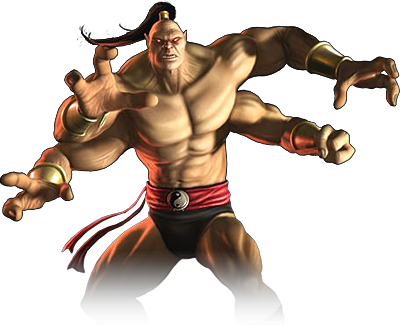 A 2000 year old half-human, half-dragon, remained undefeated for the past 500 years. He won the title of grand champion by defeating Kung Lao, a Shaolin fighting monk. It was during this time that the tournament became corrupted as it fell into the hands of Shang Tsung. He disappeared after he was defeated by Liu Kang after nine generations of Earth warriors fell in Mortal Kombat.