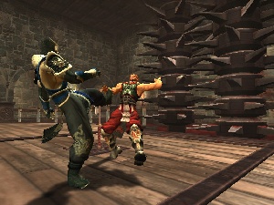 Deathtraps were introduced in Mortal Kombat: Deception. They were similar to stage fatalities of previous installments, however, they could be invoked at any moment during a match, not just after defeating your opponent. If a character was in the close vicinity of a deathtrap, the other player could knock them into it, resulting in a grisly death sequence.