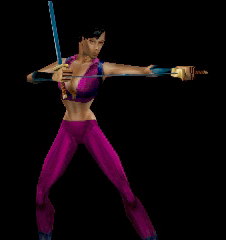Tasia was an expert swordswoman and ninja master who appeared in Mortal Kombat: Special Forces. She was a member of the Black Dragon Organization, and was freed from a Special Forces prison by Kano. She used twin katanas to spin like a whirlwind, and could teleport in addition to firing paralyzing orbs. She wore purple tights, a halter top, and had short black hair.
